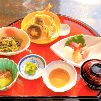 お刺身と小鉢が付いた、満足感のある内容で、締めには旨味が凝縮された出汁で味わううどんをお楽しみいただけます。